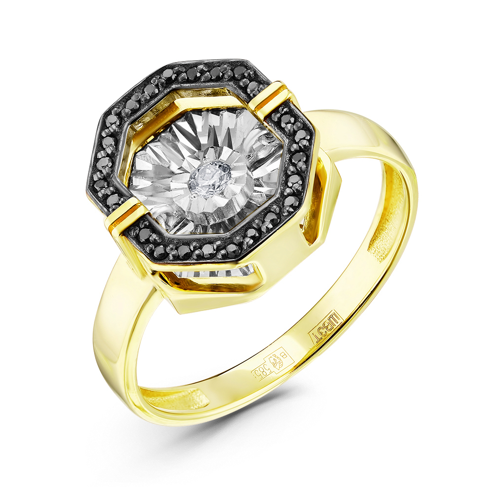 Кольцо из желтого золота с чёрными бриллиантами 027972