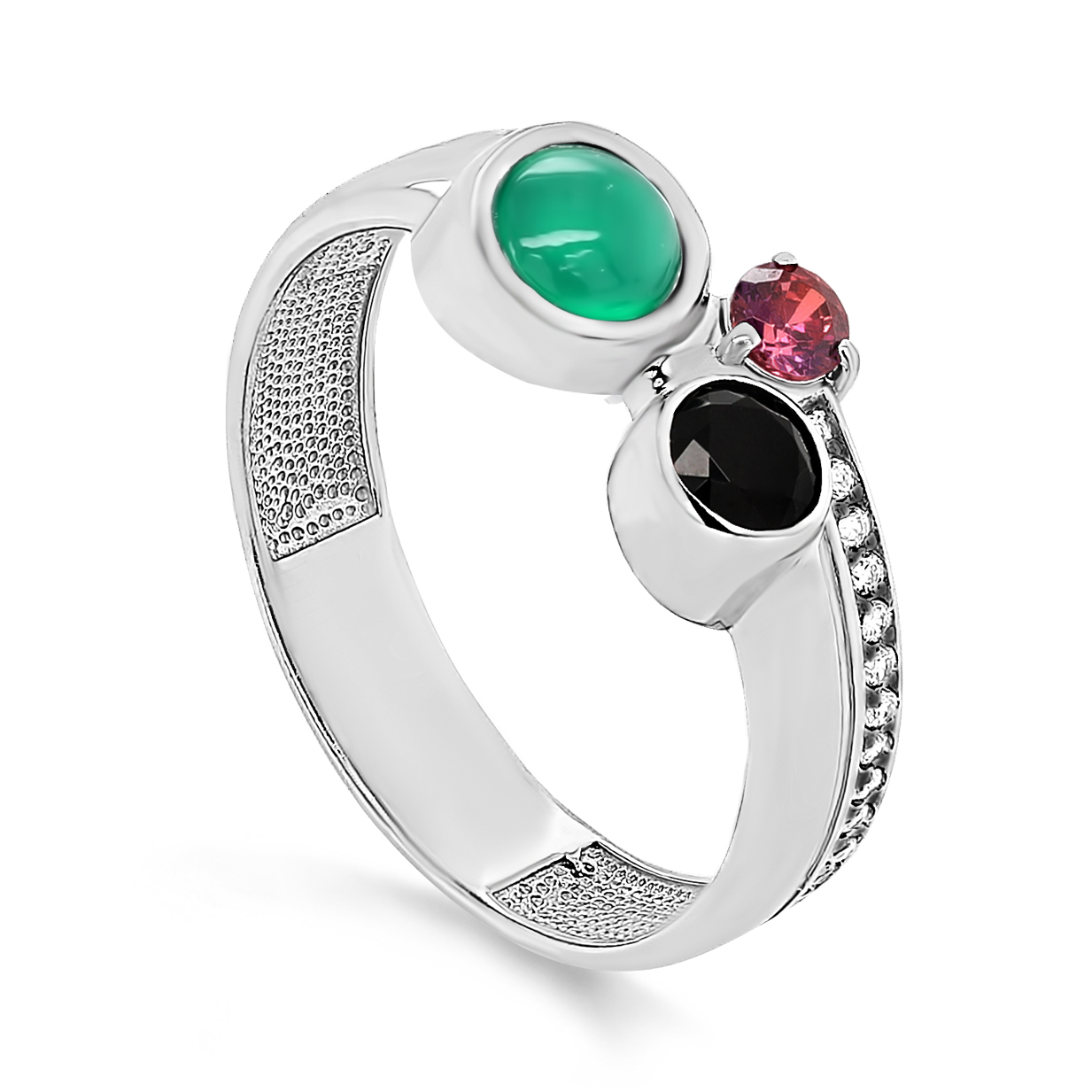 Кольцо из серебра с ониксом, наношпинелем и фианитами