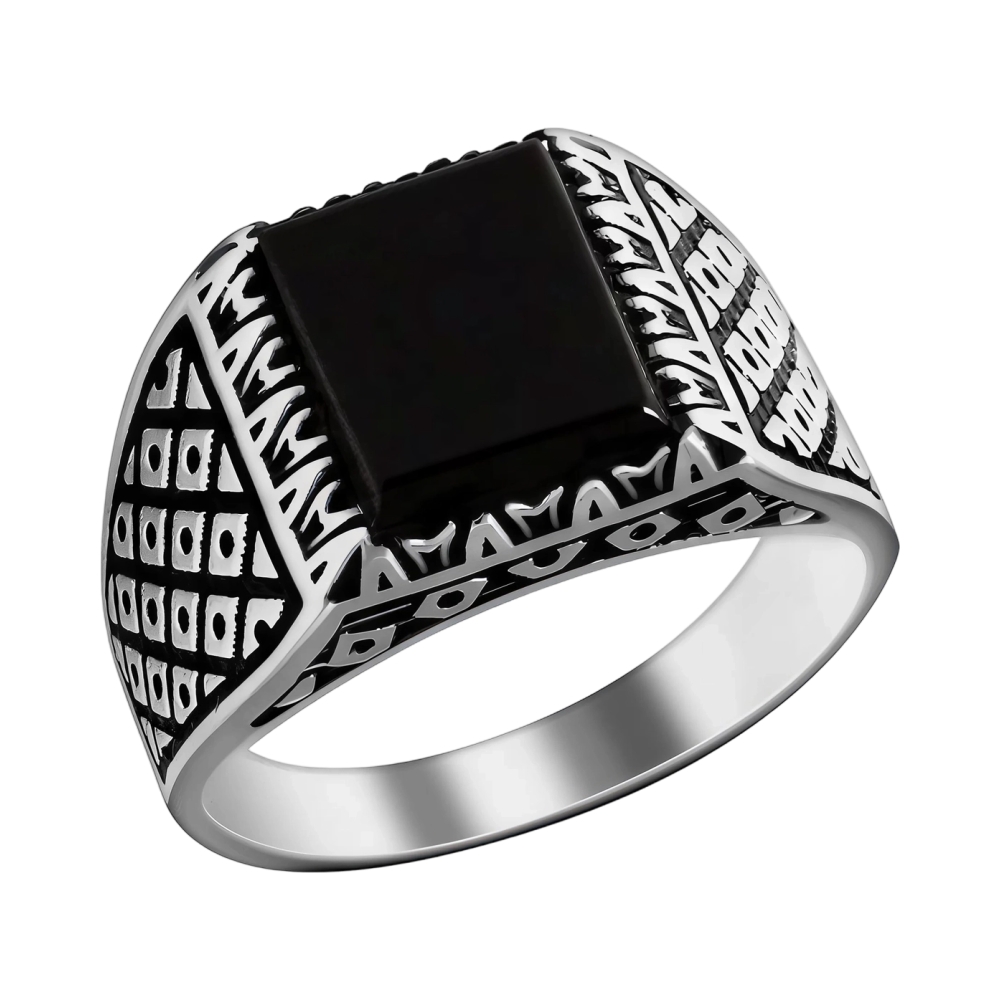 [NAME] => Печатка мужская из серебра с обсидианом