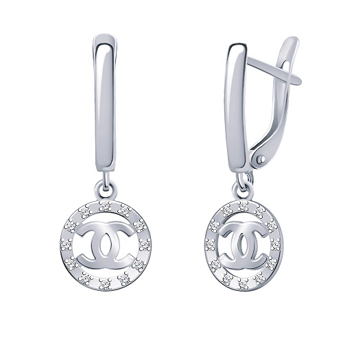 Серьги из белого золота с фианитами