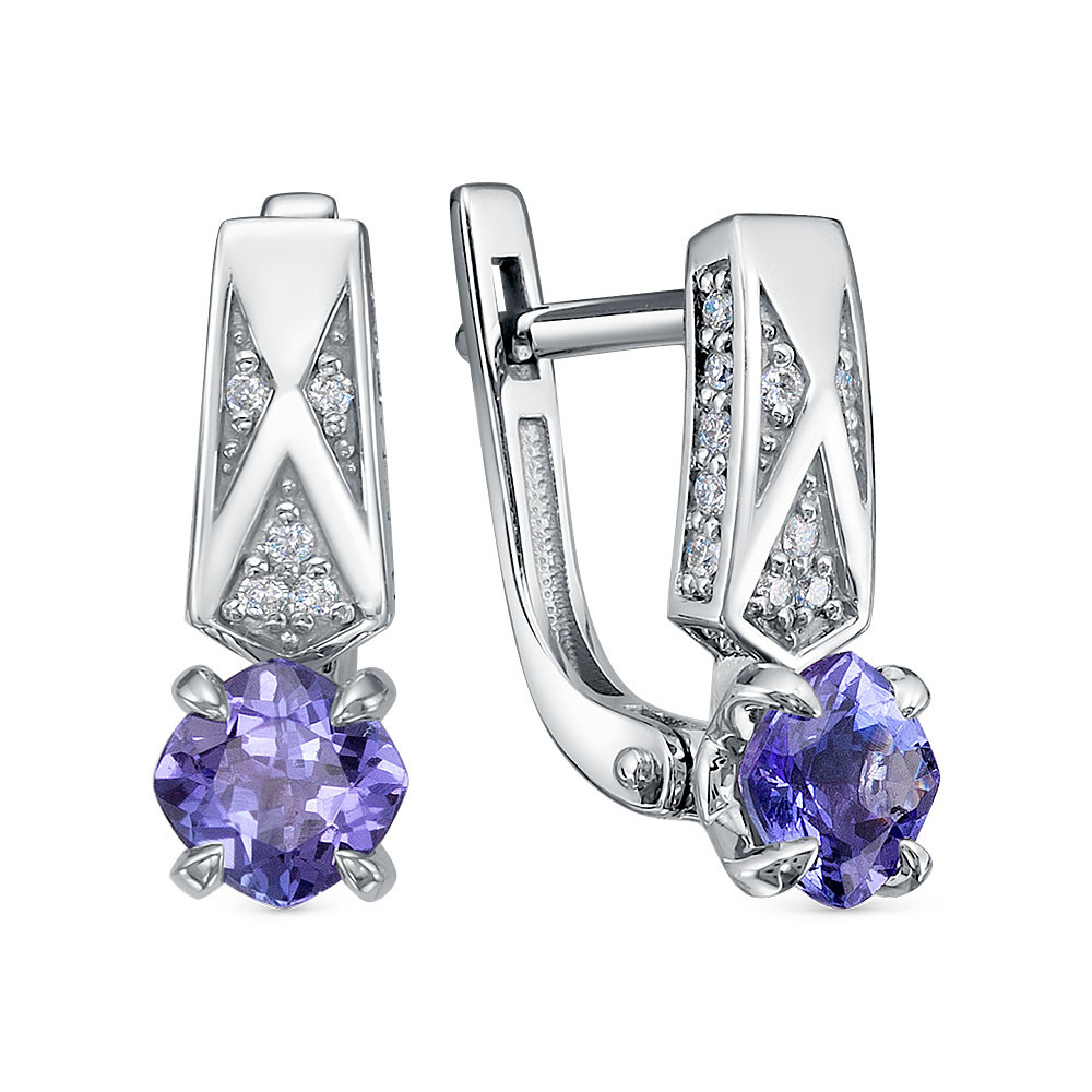 Серьги из белого золота с танзанитами и бриллиантами