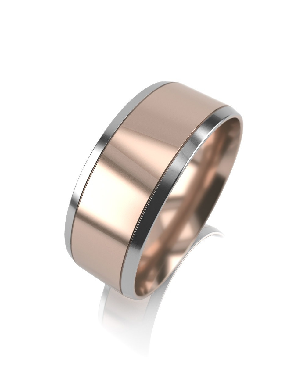 Обручальное кольцо, выполненное в сочетании белого и красного золота 585 пробы.