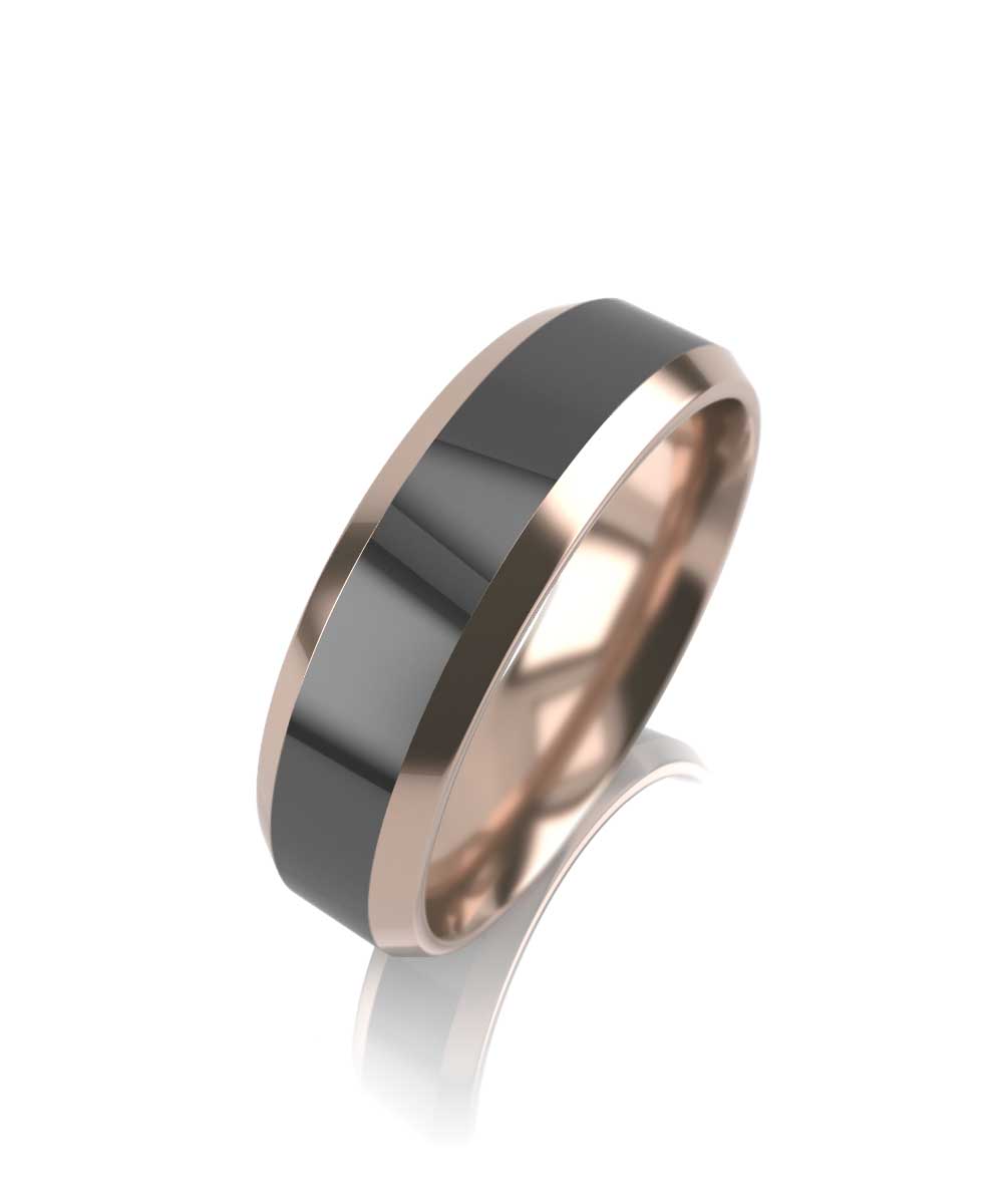 [DETAIL_TEXT] => Стильное обручальное кольцо из красного золота 585 пробы с керамикой черного цвета .<br />