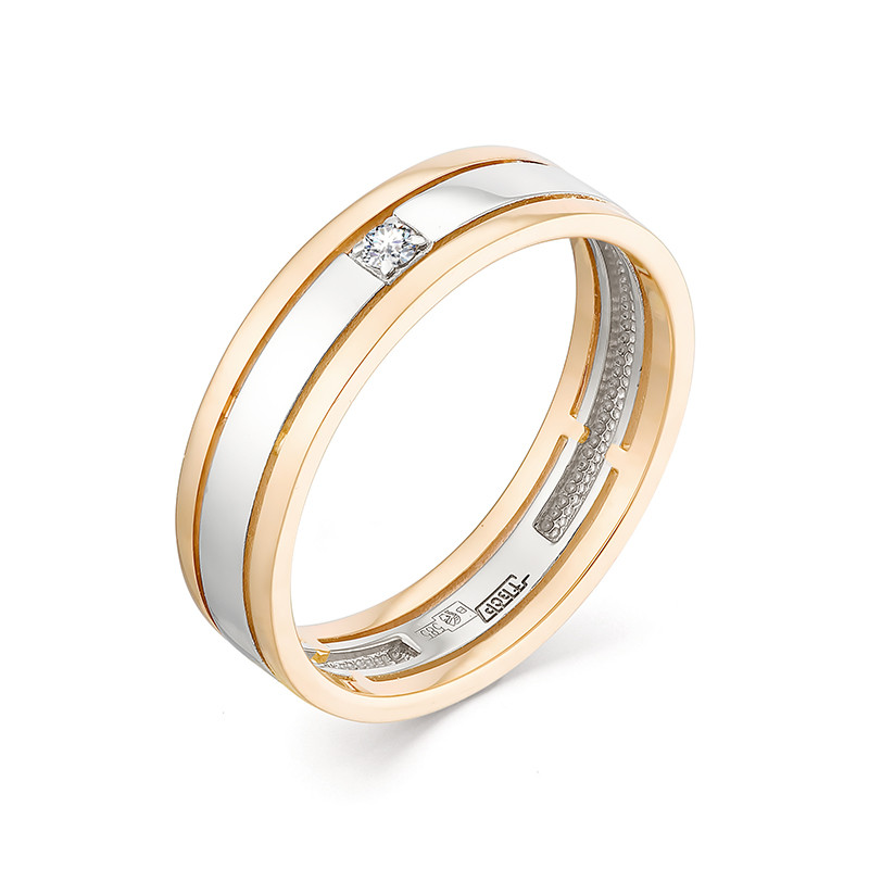 Обручальное кольцо из комбинированного золота с бриллиантом 037820