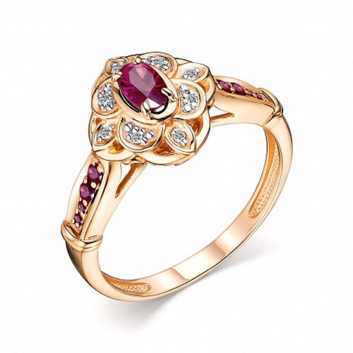 Кольцо из красного золота с рубинами и бриллиантами 045222