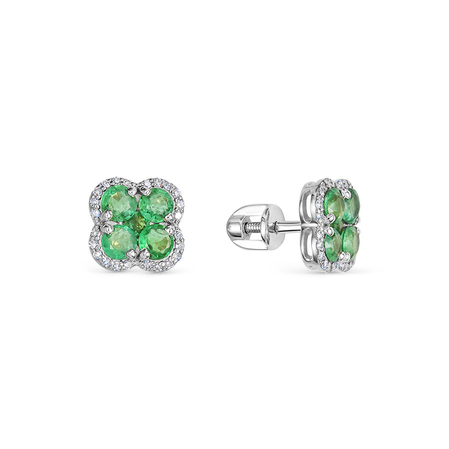 Серьги из белого золота с изумрудами и бриллиантами 052106
