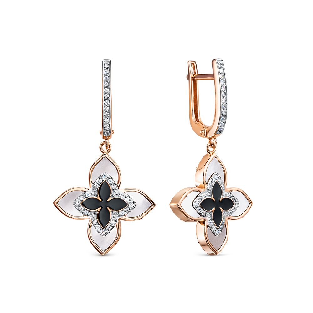 [NAME] => Серьги из красного золота с перламутром и фианитами