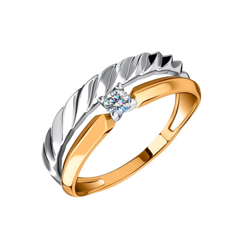 Кольцо из комбинированного золота с фианитами