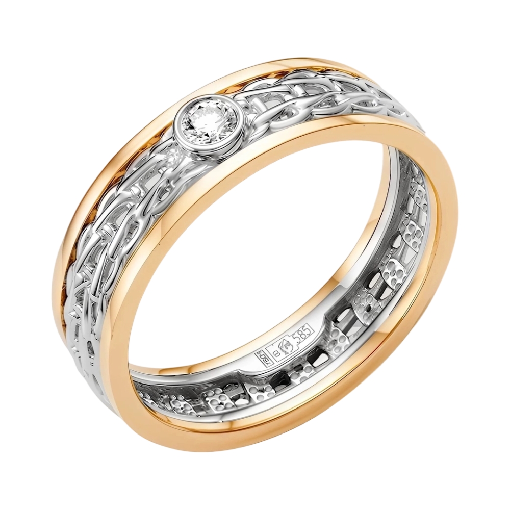Обручальное кольцо из комбинированного золота с бриллиантом