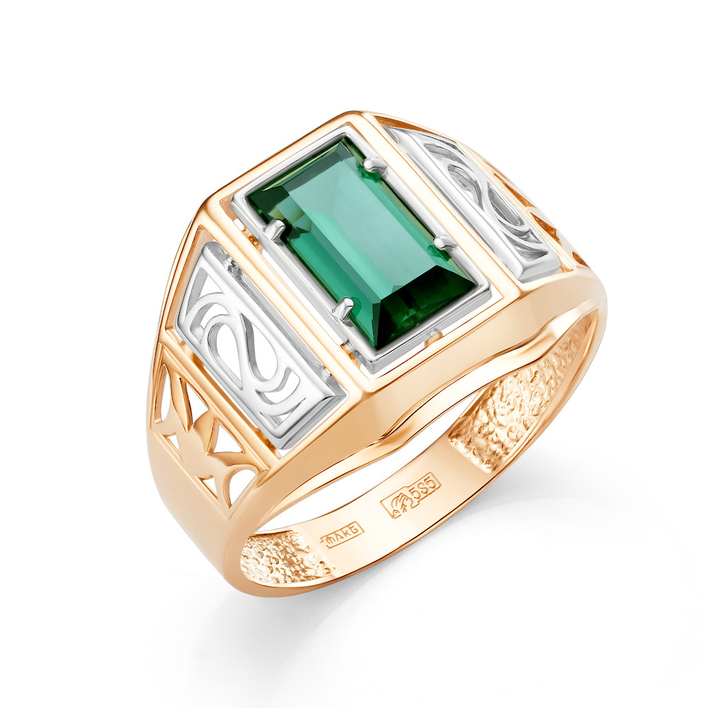 Печатка мужская из комбинированного золота с кварцем зеленым 079791