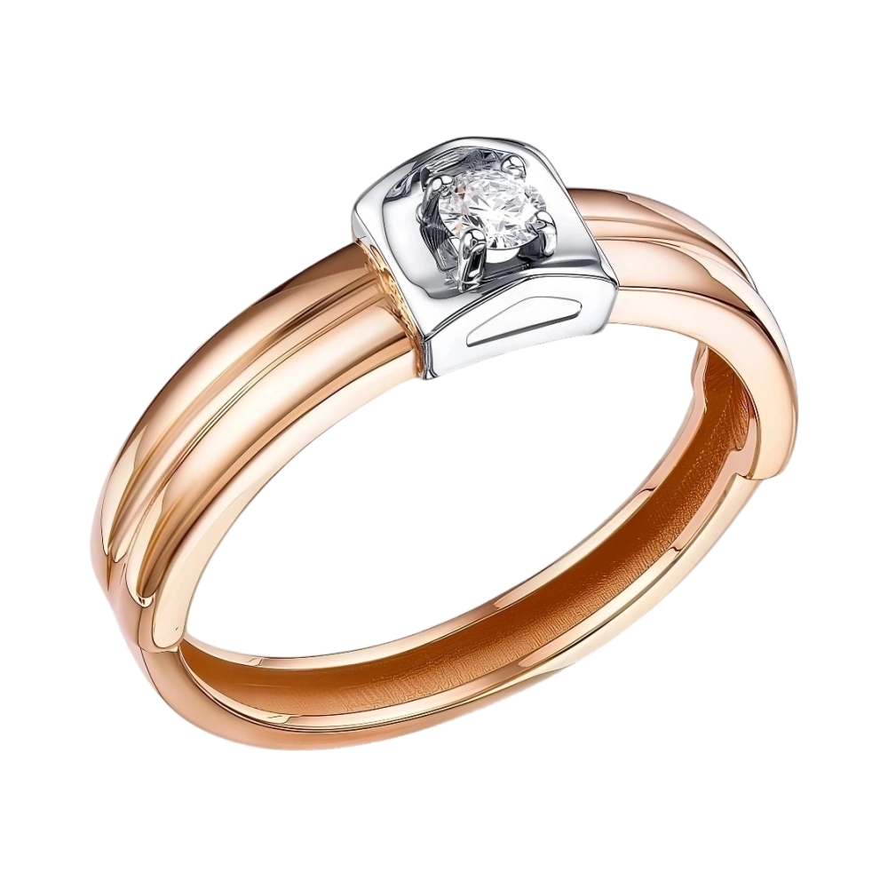 Кольцо помолвочное из красного золота с бриллиантом