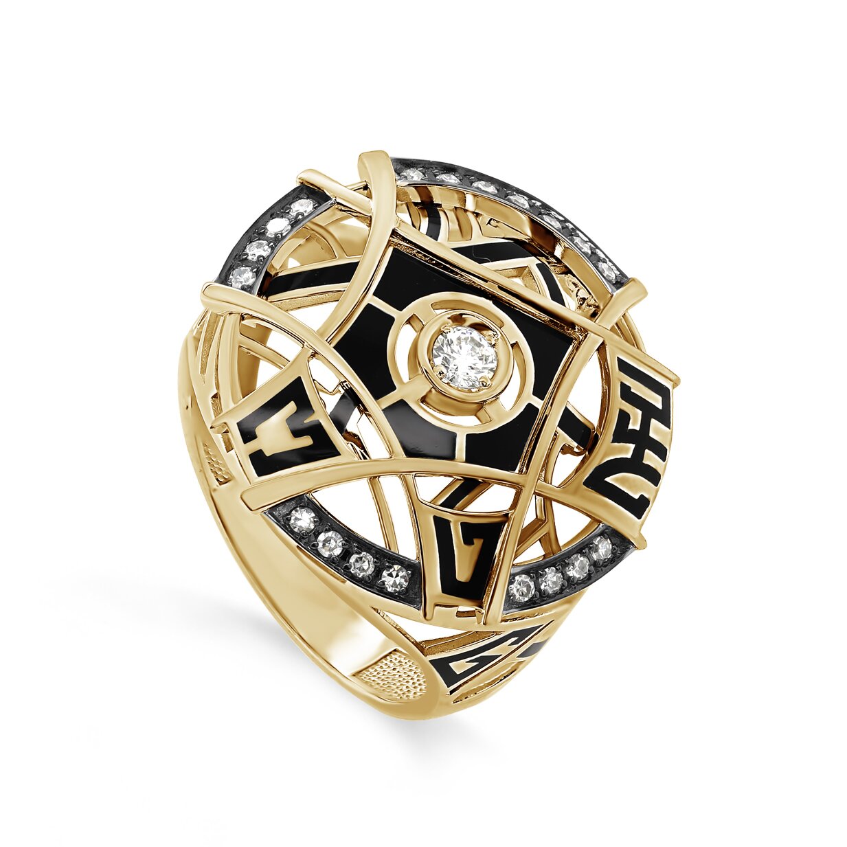 Кольцо из жёлтого золота с бриллиантами и холодной эмалью 084686