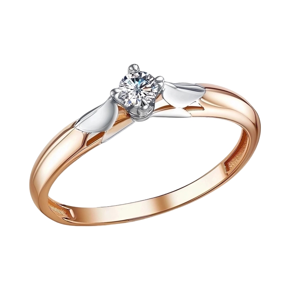 Кольцо помолвочное из комбинированного золота с фианитом 097843