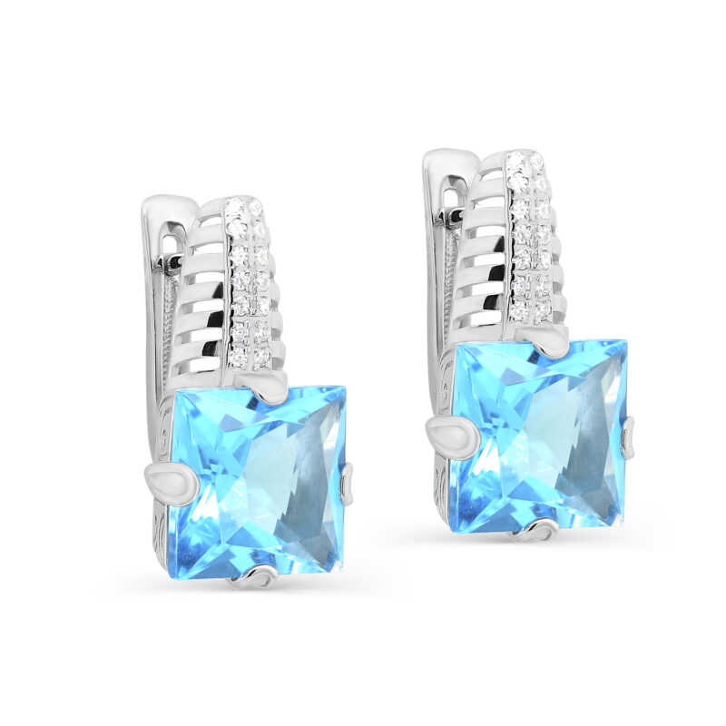 Серьги из серебра с фианитами и ситаллом 099756