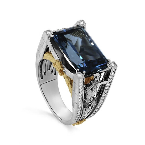 Кольцо из белого золота с бриллиантами и топазом