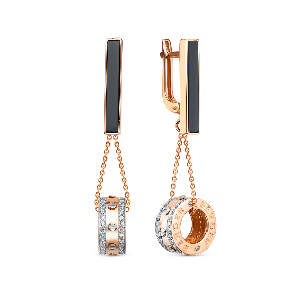 Серьги из красного золота с ониксом и фианитами
