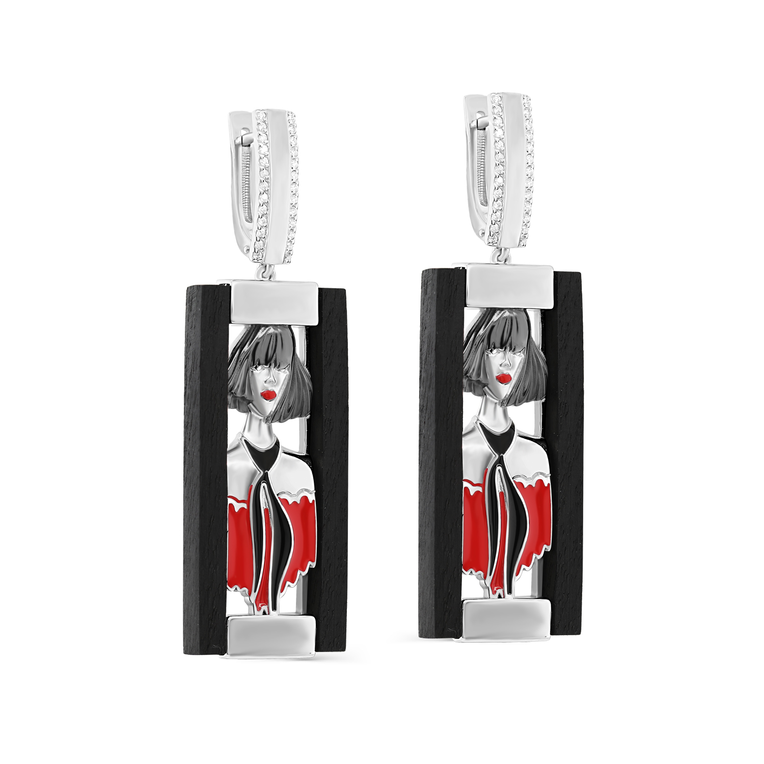 Серьги из серебра с вставкой из дерева и фианитами 125297
