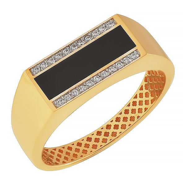 Печатка мужская из красного золота с агатом и фианитами 125863