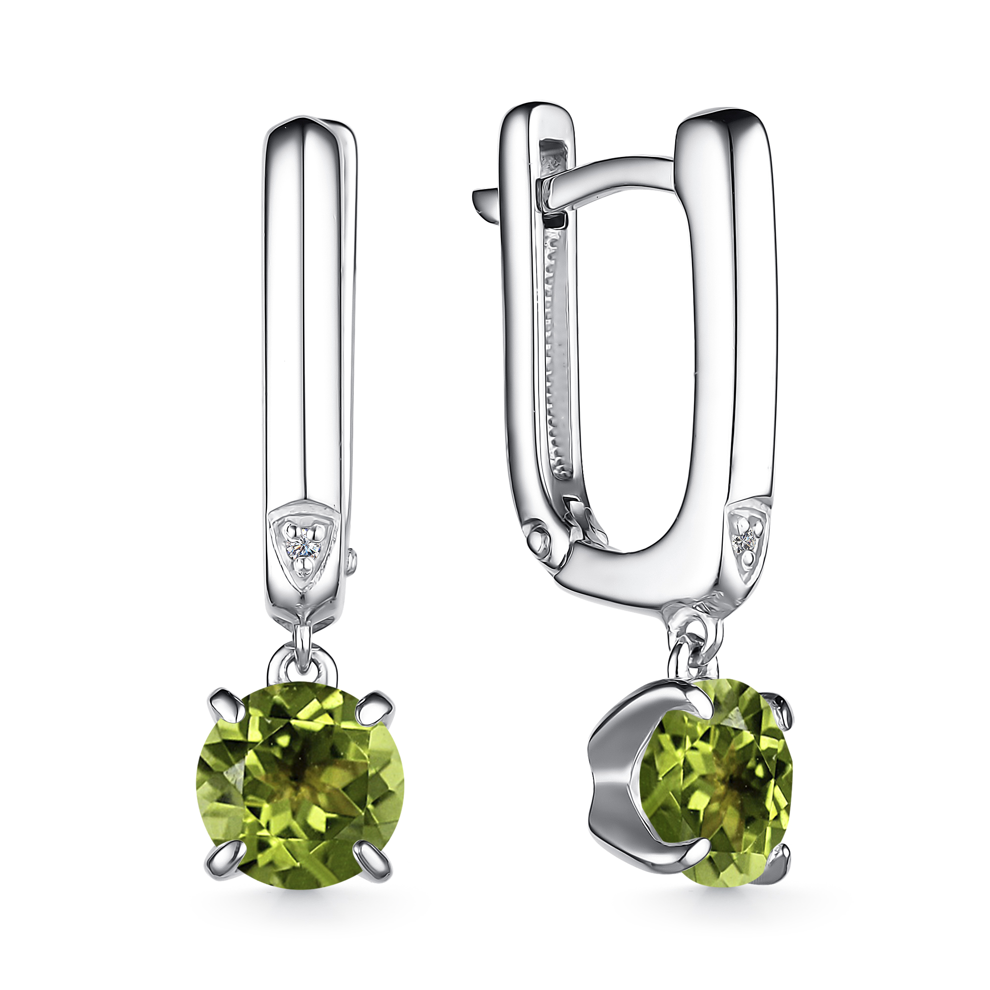 Серьги из серебра с хризолитом и бриллиантами 126891