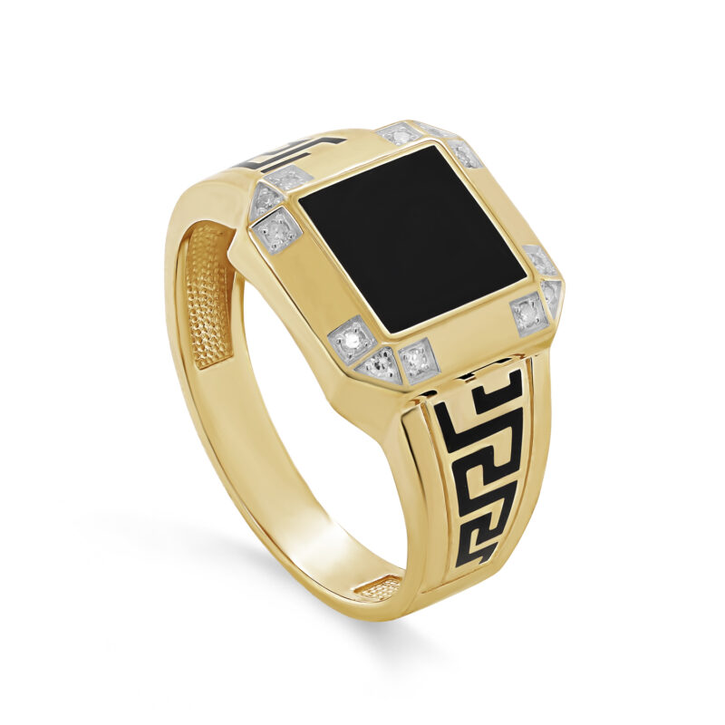 Мужская печатка из желтого золота с бриллиантами