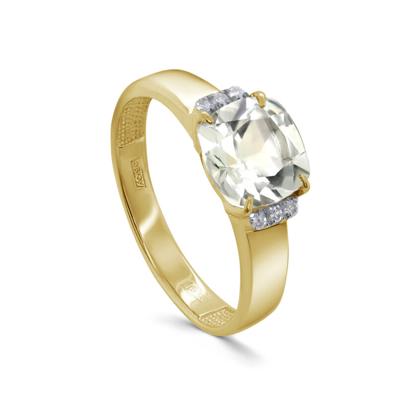 Кольцо из жёлтого золота с бриллиантами и кварцем