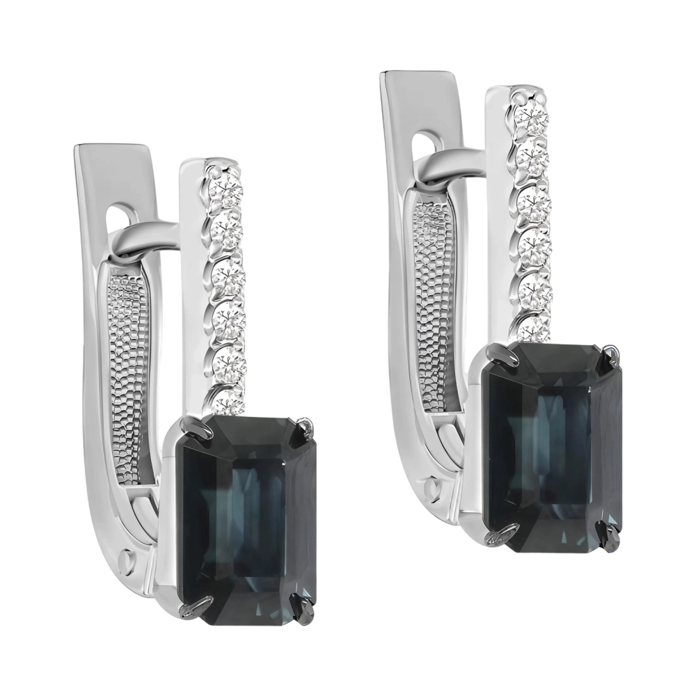 Серьги из белого золота с бриллиантами и сапфирами
