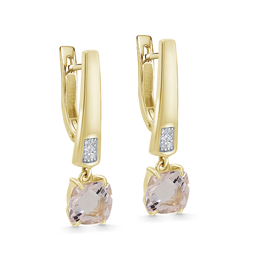 Серьги из желтого золота с бриллиантами и морганитом