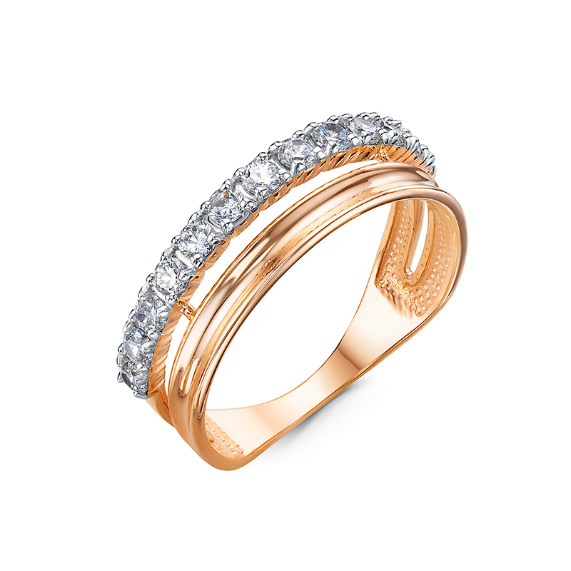 Кольцо из красного золота с фианитами 128074