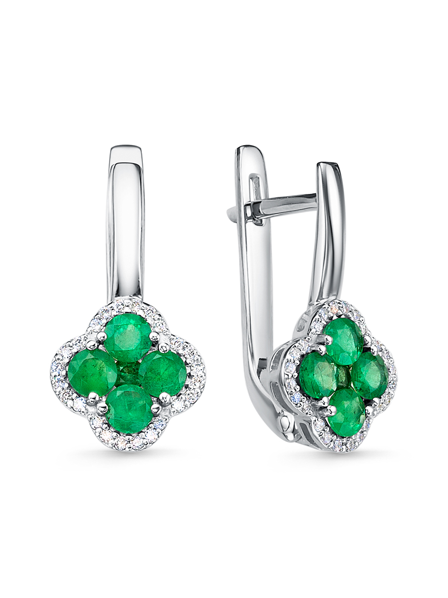 Серьги из белого золота с изумрудами и бриллиантами 131389