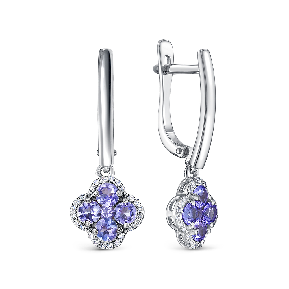 Серьги из белого золота с танзанитом и бриллиантами 131483