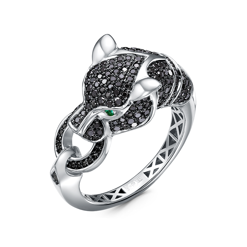 Кольцо из белого золота с изумрудами и бриллиантами 131814