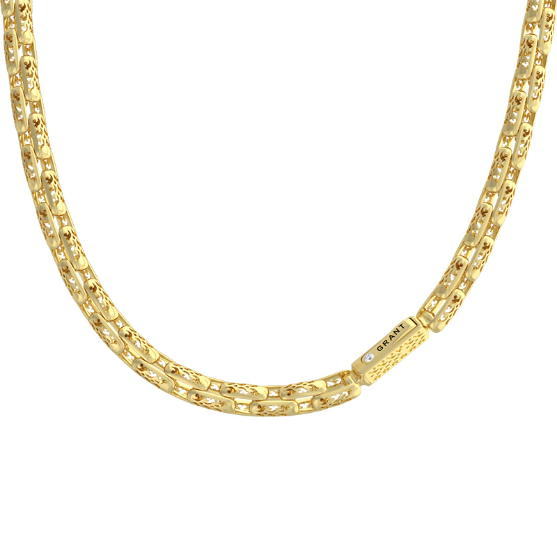 Цепь из желтого золота фантазийное плетение с бриллиантами