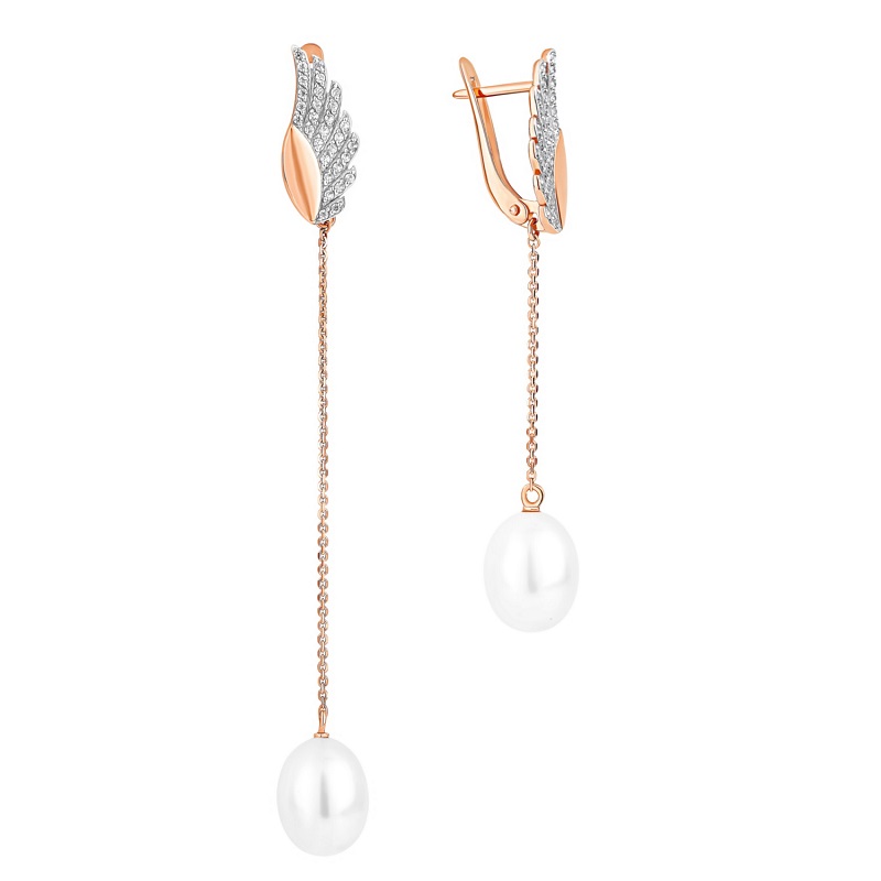 [NAME] => Серьги из красного золота с жемчугом и фианитами