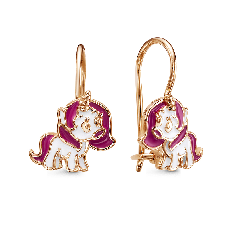 Детские серьги в красном золоте с эмалью 133102