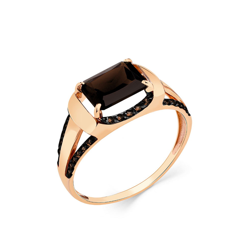 Кольцо из красного золота с раух-топазом и фианитами 139108