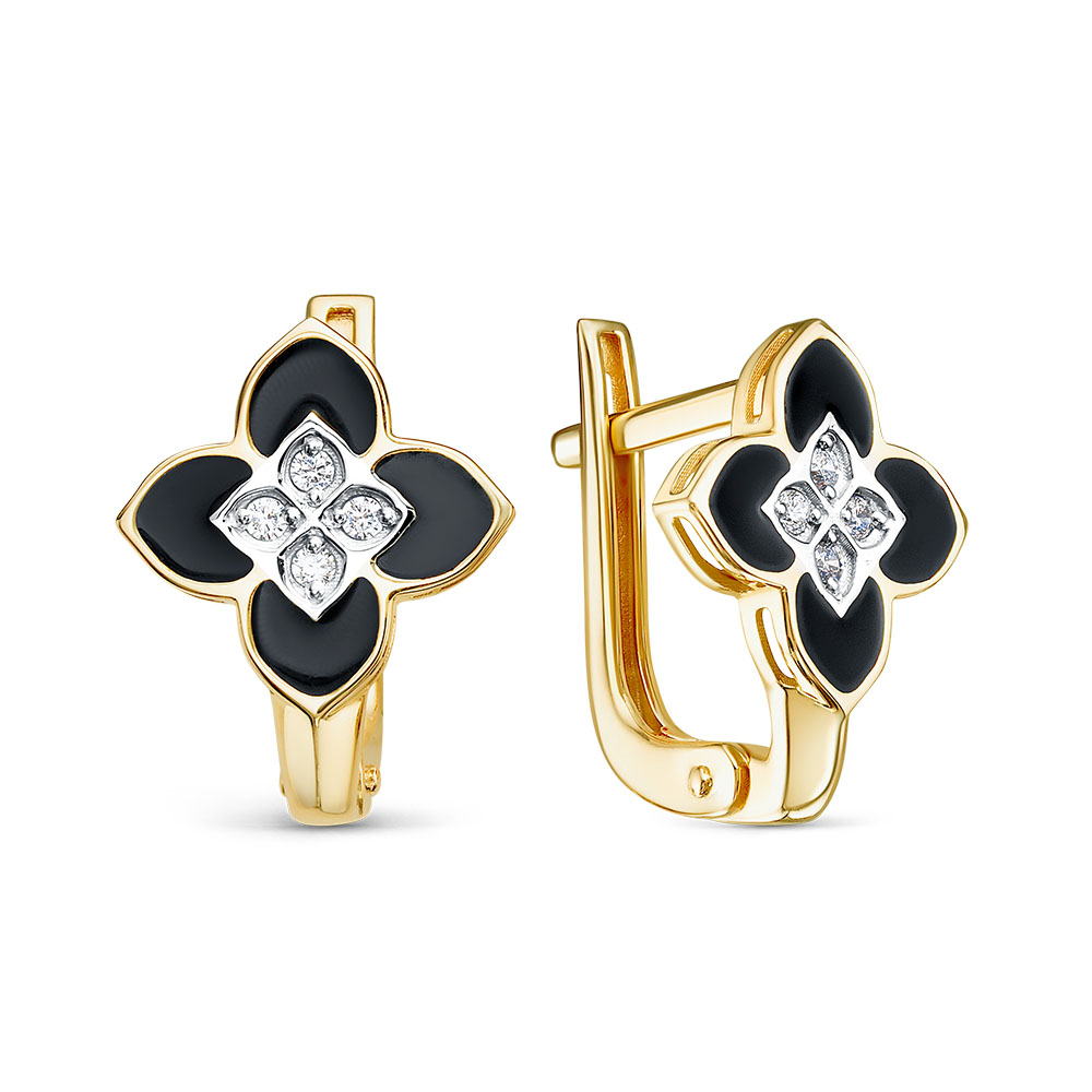 [NAME] => Серьги из желтого золота с эмалью и фианитами