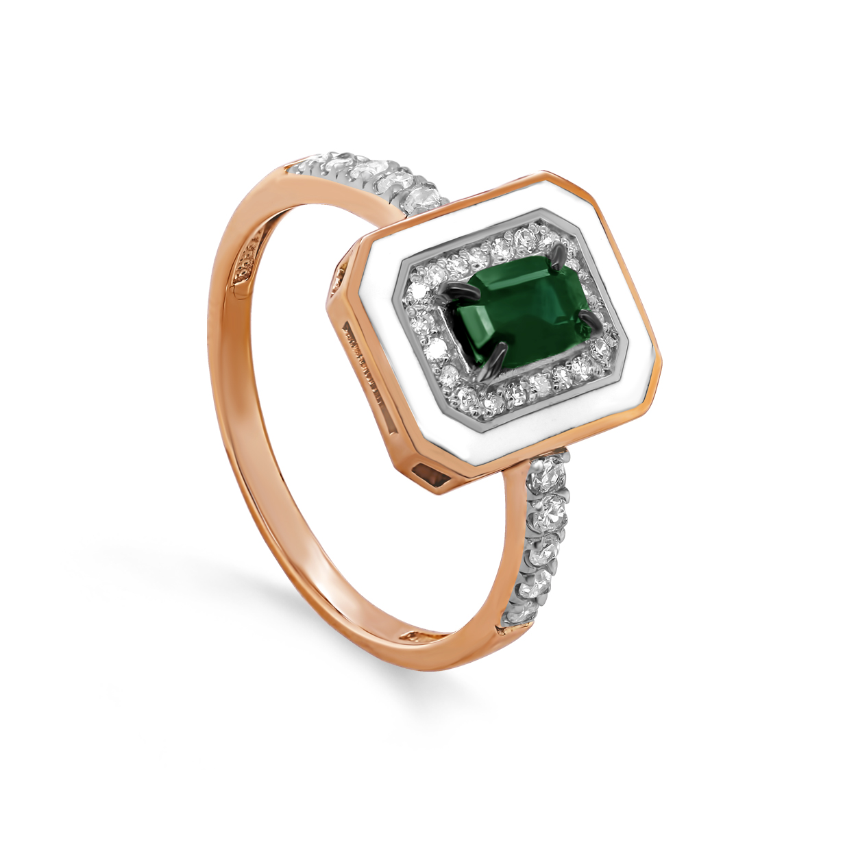 Кольцо из красного золота с бриллиантами и изумрудом 141729