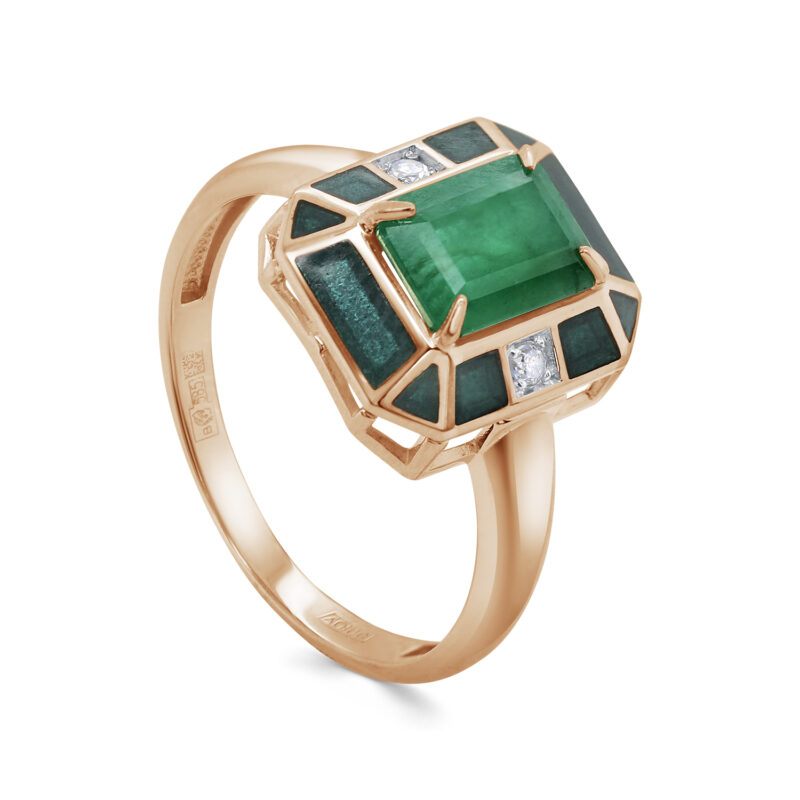 Кольцо из красного золота с изумрудом и бриллиантами 141733