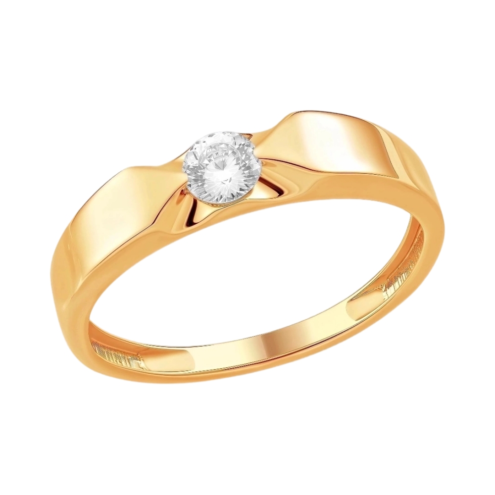 Кольцо помолвочное из красного золота с фианитами