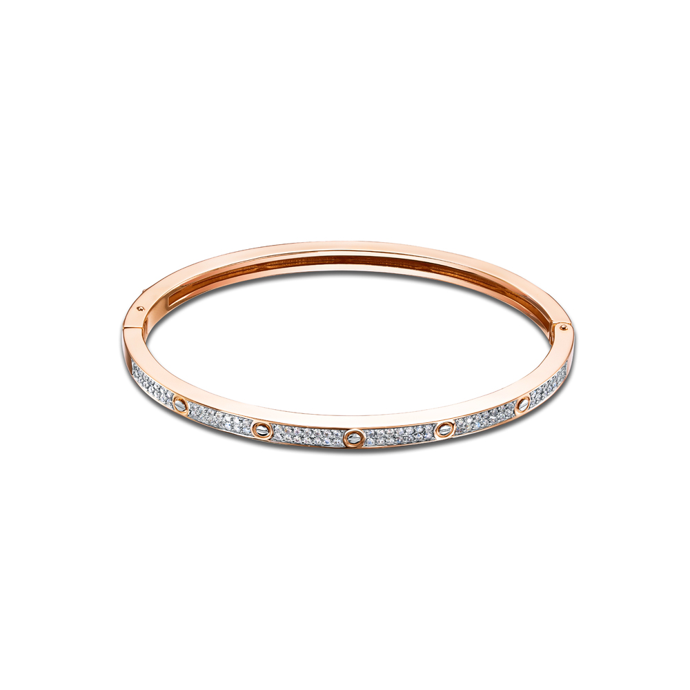 Браслет жесткий из красного золота с фианитами 144266