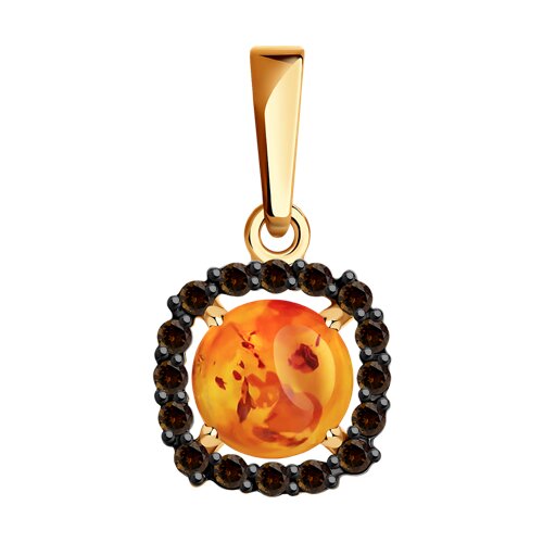 Подвеска из красного золота с раух-топазм и янтарем 146767