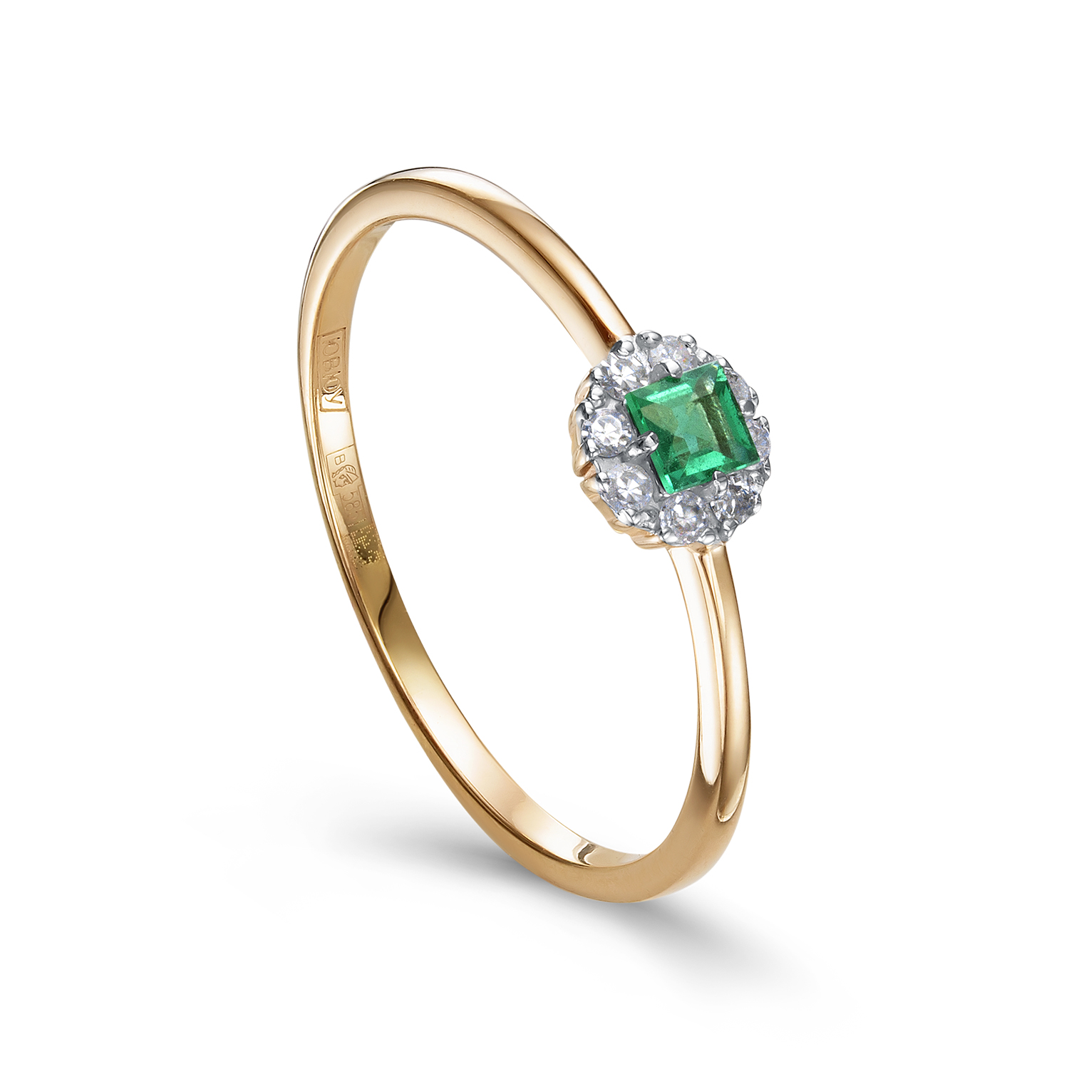 Кольцо из красного золота с изумрудом и бриллиантами 147053