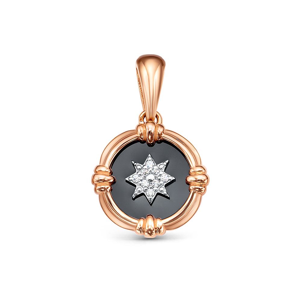 Подвеска из красного золота с фианитами и ониксом 147619
