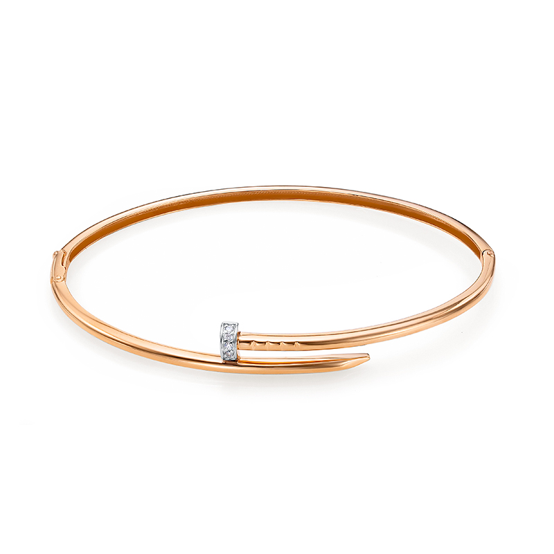Браслет жесткий в красном золоте с фианитами