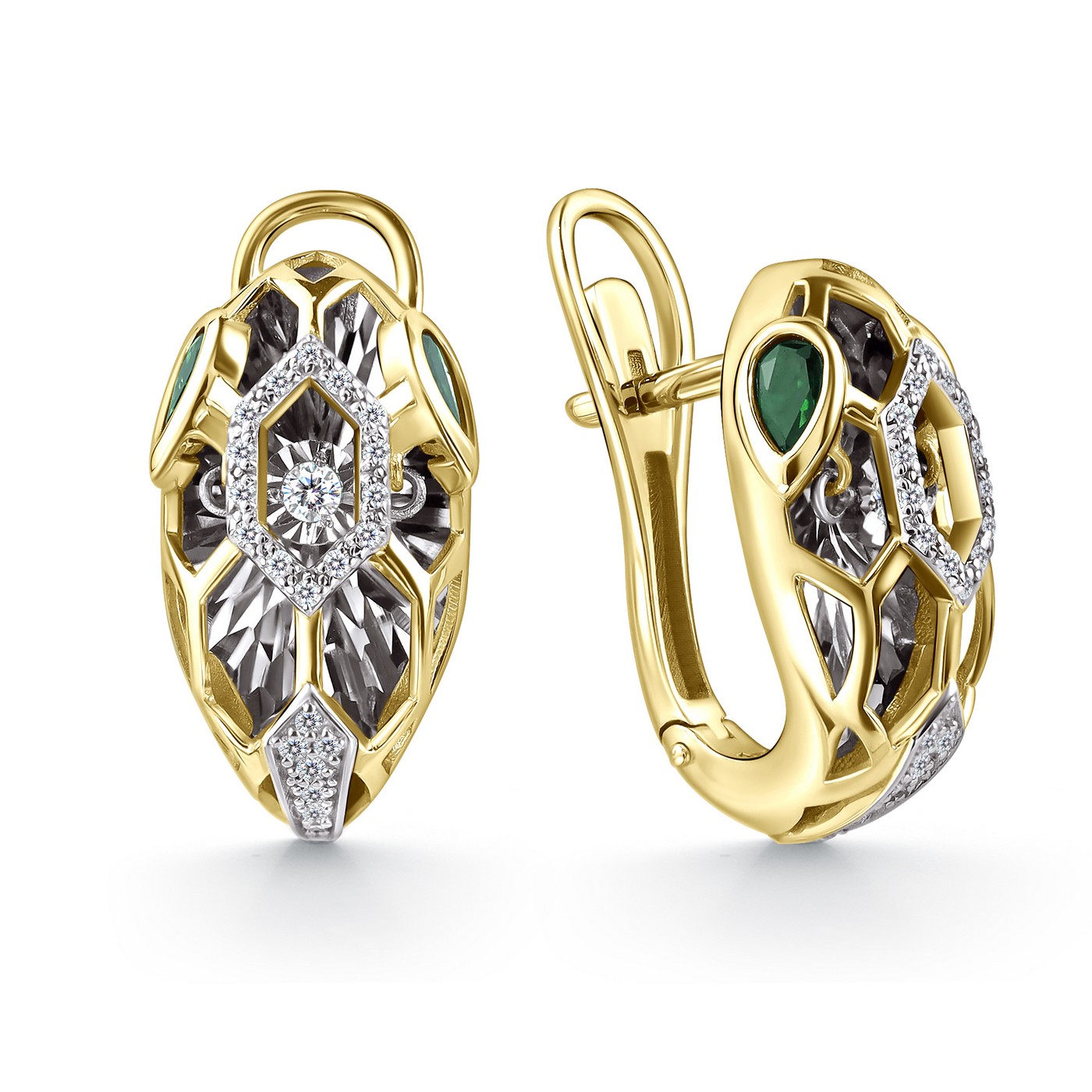 Серьги из желтого золота с изумрудами и бриллиантами 151371