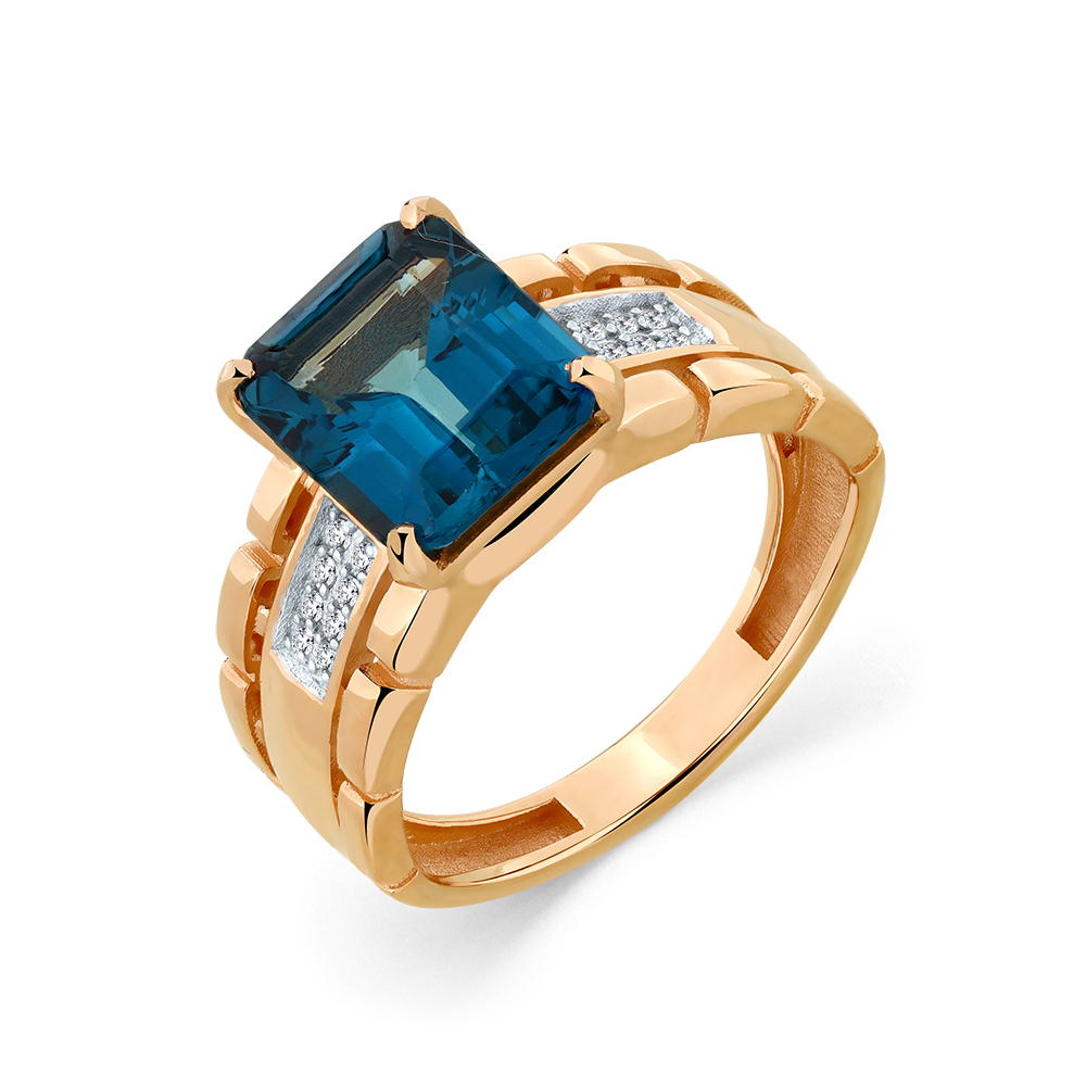 Кольцо из красного золота с Лондон топазом и фианитами 151664