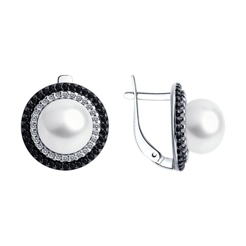 Серьги из серебра с жемчугом и фианитами 152557