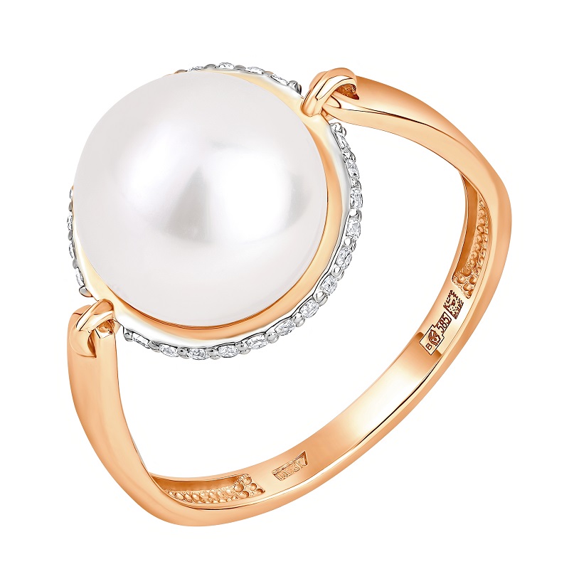 Кольцо из красного золота с жемчугом и фианитами 152927
