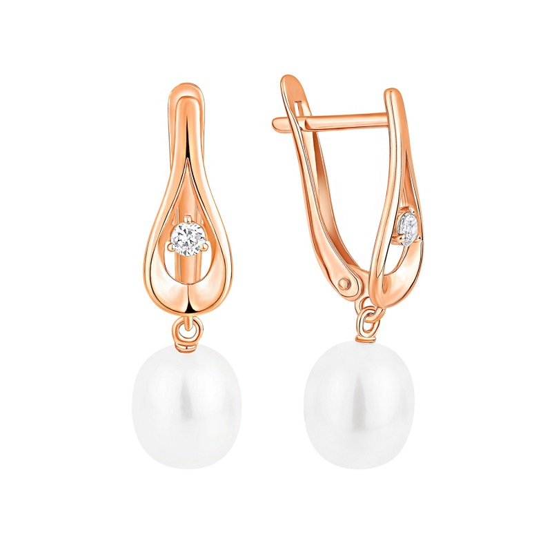 [NAME] => Серьги из красного золота с жемчугом и фианитами