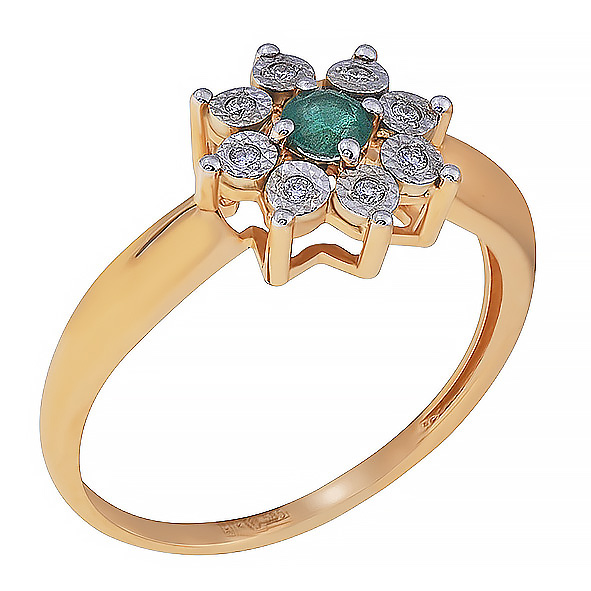 Кольцо из красного золота с изумрудом и бриллиантами 153660
